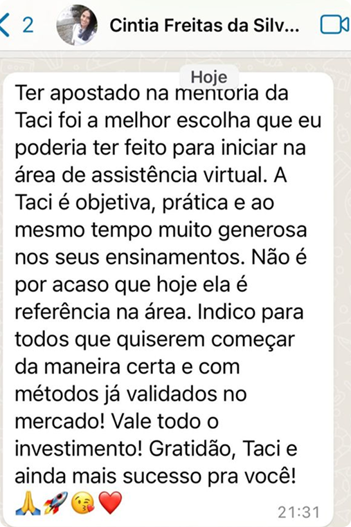 Ficou com alguma dúvida? Mande um e-mail para: contato@taciassistentevirtual.com.br